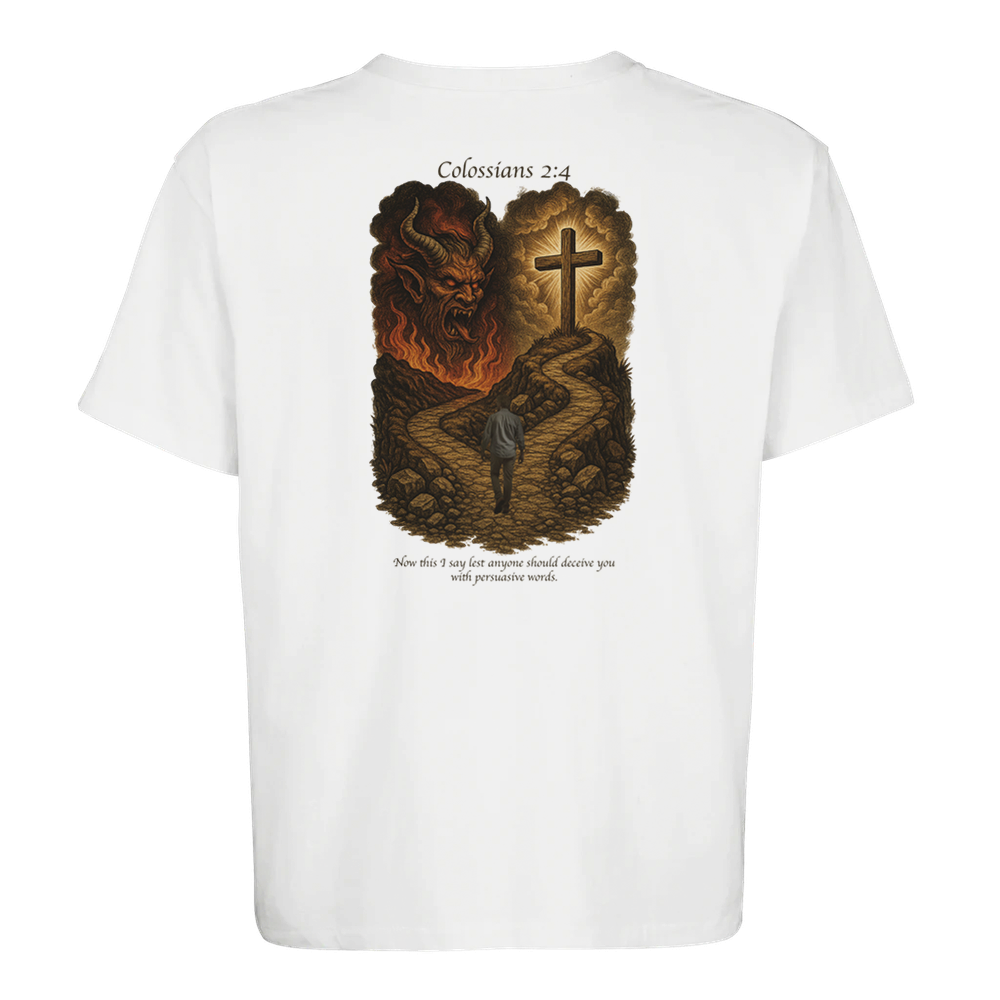 The Colossians 2:4 is a stylish and sustainable unisex oversized T-shirt made from a blend of recycled and regular cotton.