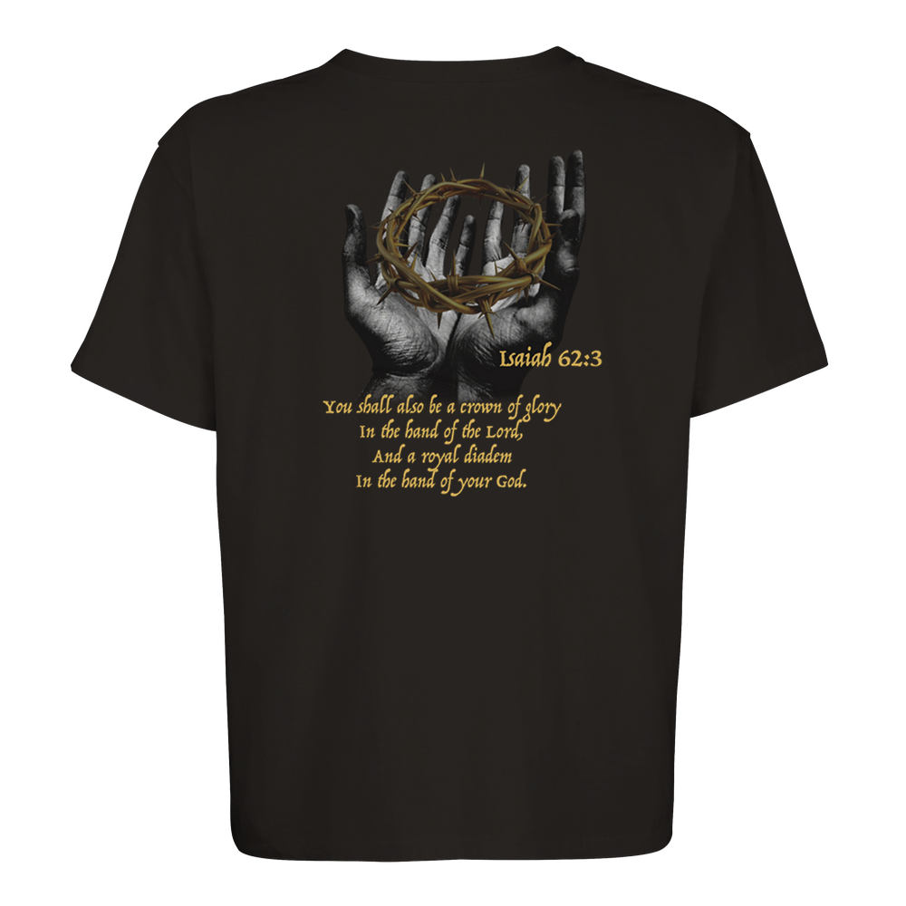 The Isaiah 62:3  is a stylish and sustainable unisex oversized T-shirt made from a blend of recycled and regular cotton.