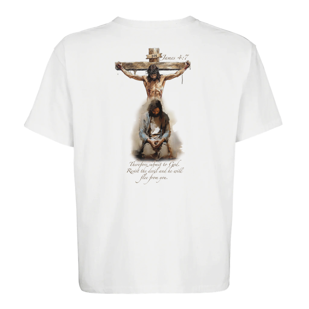 The James 4:7 is a stylish and sustainable unisex oversized T-shirt made from a blend of recycled and regular cotton.