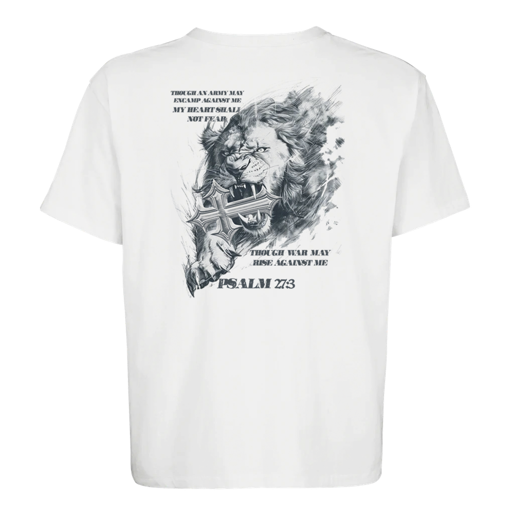 The Psalm 27:3 is a stylish and sustainable unisex oversized T-shirt made from a blend of recycled and regular cotton.