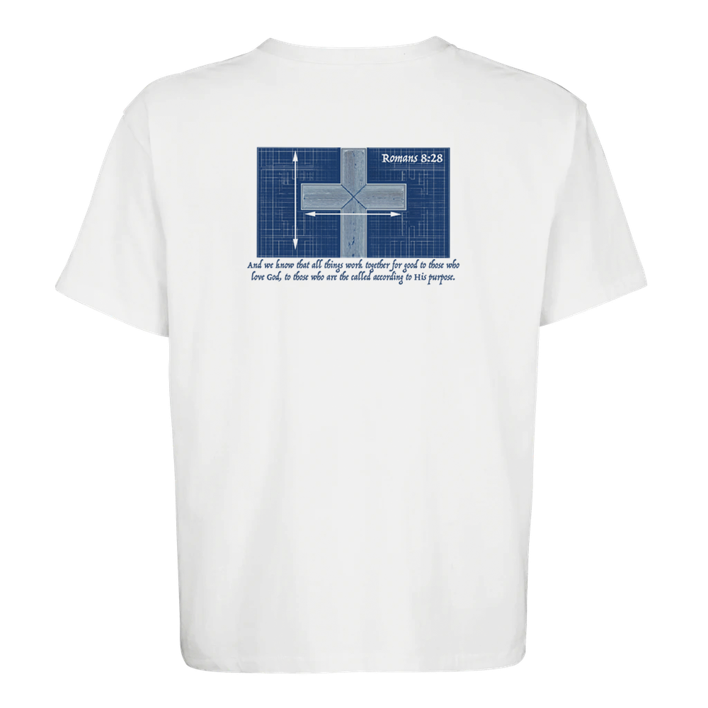 The Romans 8:28 is a stylish and sustainable unisex oversized T-shirt made from a blend of recycled and regular cotton.